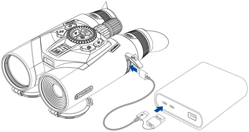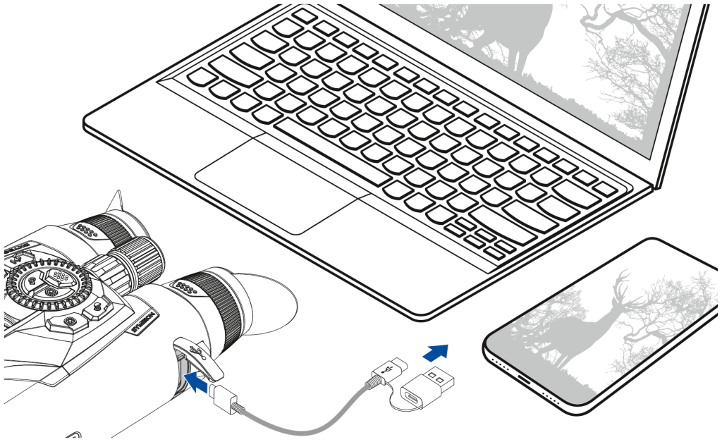 * Actual operating time depends on the degree of use of Wi-Fi, video recorder, built-in laser rangefinder, Bluetooth, IR illuminator, active observation channels and activated power saving mode.